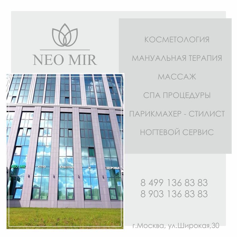 Добро пожаловать в клуб красоты и здоровья Neomir. club - место, где работают люди, которые хорошо понимают, как ценна естественная красота, и умеют ее создавать и сохранять. Каждый из нас ежедневно подвергается воздействию различных стрессовых факторов: грязный воздух, перенесенные болезни и вредные привычки, недостаток сна и крайности климата... Все это отражается на нашем внешнем виде, и далеко не всегда косметические средства помогают улучшить положение. В клубе красоты и здоровья Neomir. club вам вернут красоту, которая идет изнутри!